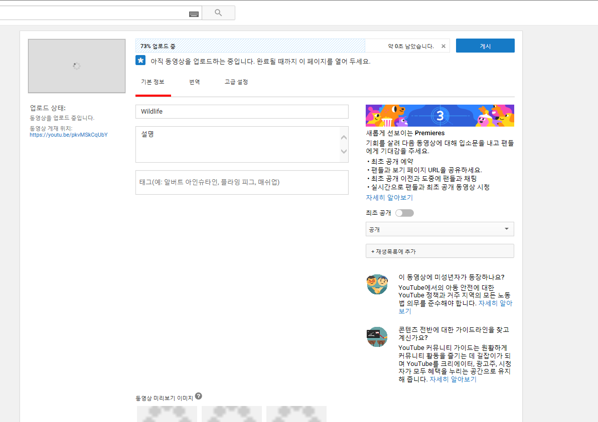 단계에 따라 구글 계정을 확인 하여 구글 계정을 확인 받은 후 영상을 업로드