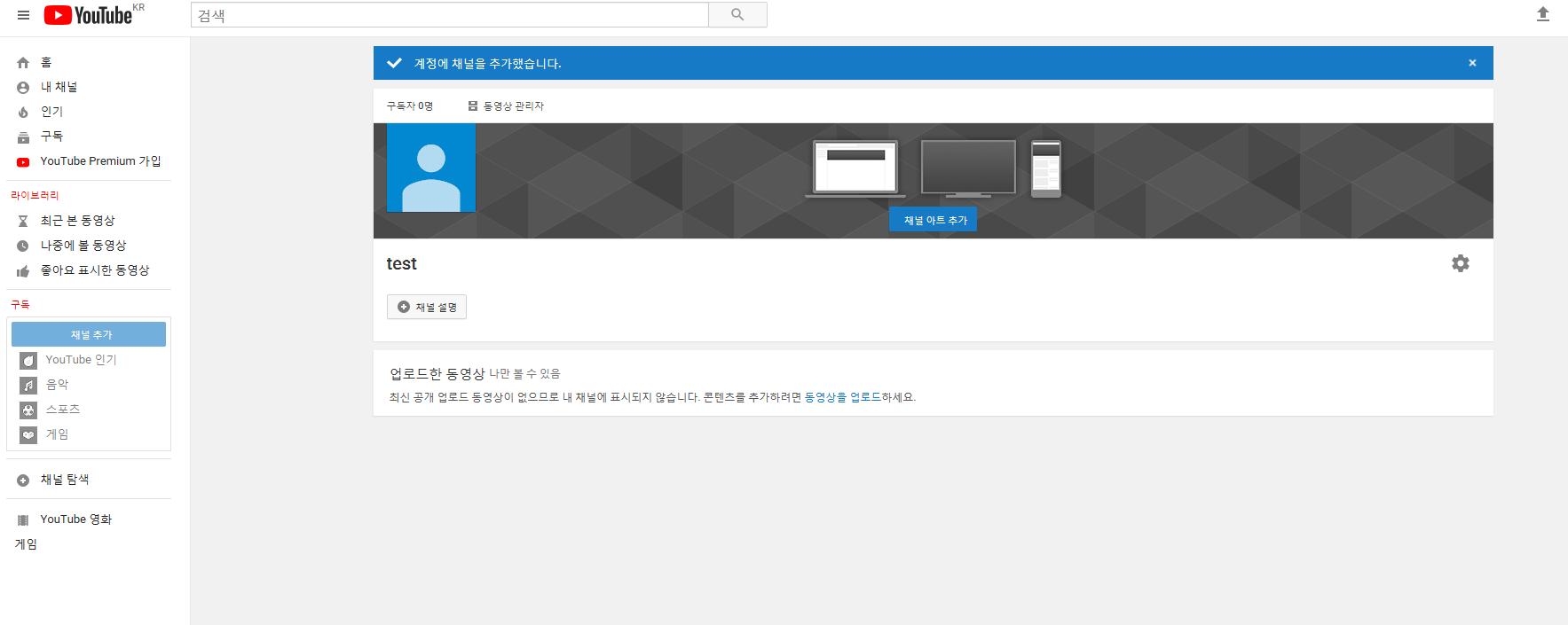 3) 원하는 채널로의 전환 후 동영상 업로드 하기